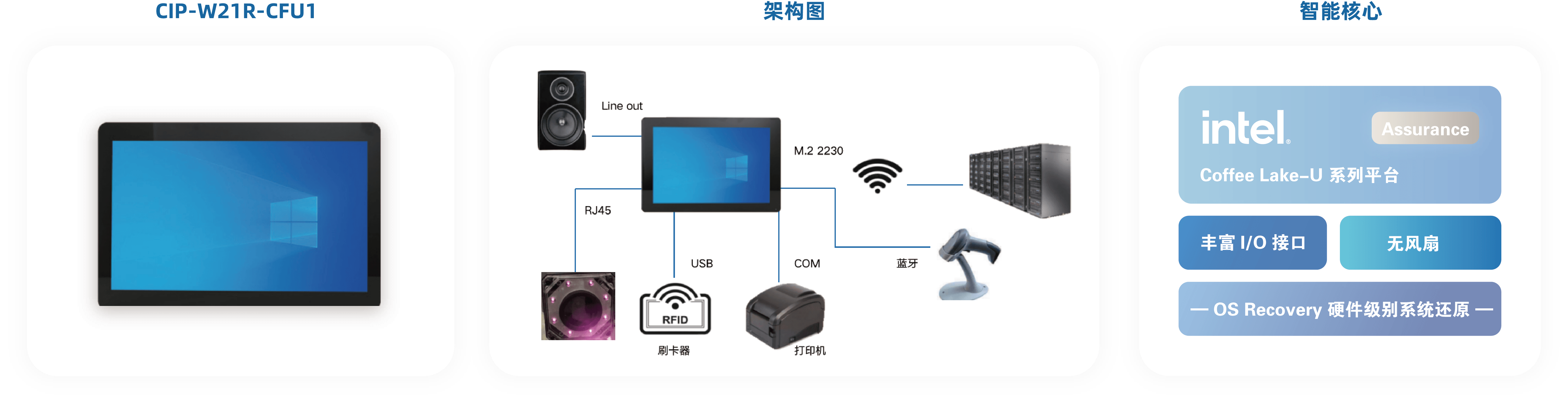 基于客户需求,酷游九州提供了CIP-W21R-CFU1系列工业平板电脑,该系列产品具有以下优势: